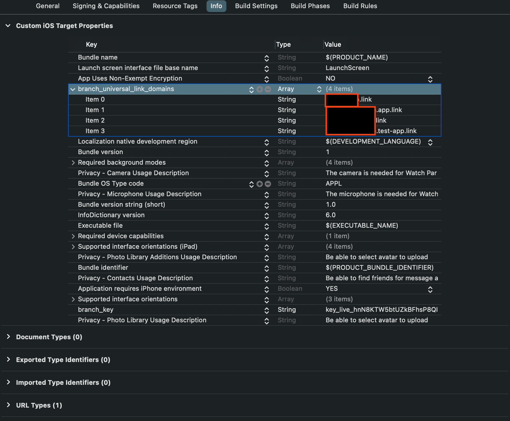 applinks:xxxx-alternate.test-app.linkThis action will add the following keys to your info.plist