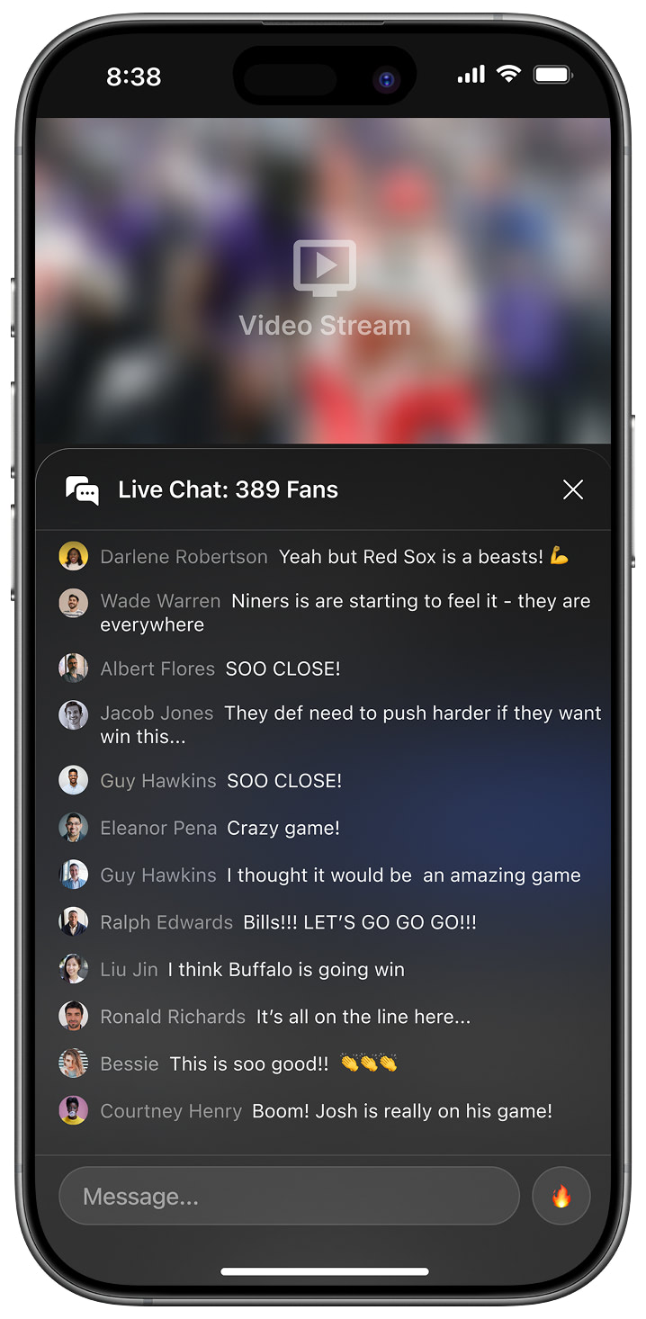 Viewers who join a channel can participate in conversation for a particular stream/event.