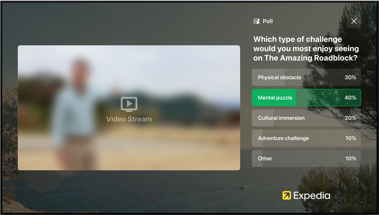 Test Gamification: A simple test integration that can be deployed in just a few hours is to integrate StreamLayer’s gamification feature. This feature allows a moderator to insert relevant gamification prompts (polls, trivia, prediction, insights, highlighted tweets) through StreamLayer’s lower-third notifications. Viewers will receive the content via notification within the stream, as seen below, and can top to open, answer, or view additional content. The typical StreamLayer launch menu and other feature sub-menu options will be hidden, but viewers will have a custom button they can tap to view their Games home tab to view old questions they may have missed while away or the leaderboard to see how they are tracking against their friends. This test would require a moderator to utilize StreamLayer Studio to create and activate questions and is a good way for your team to explore how this feature’s interactivity could be deployed over various types of programming. For this test implementation, the StreamLayer team will provide you access to StreamLayer Studio to create and moderate relevant poll, trivia, prediction, insights, and highlighted tweet content.